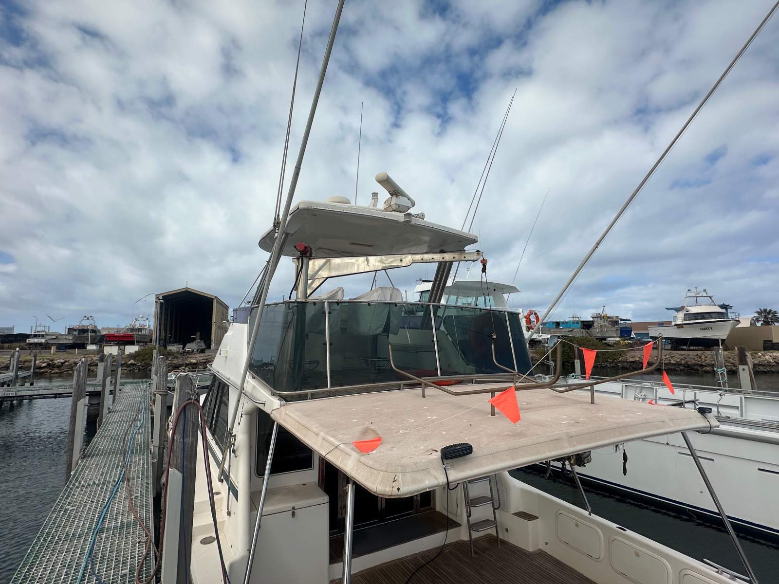 Has a Dabit for lifting dingy on an off roof of fly bridge