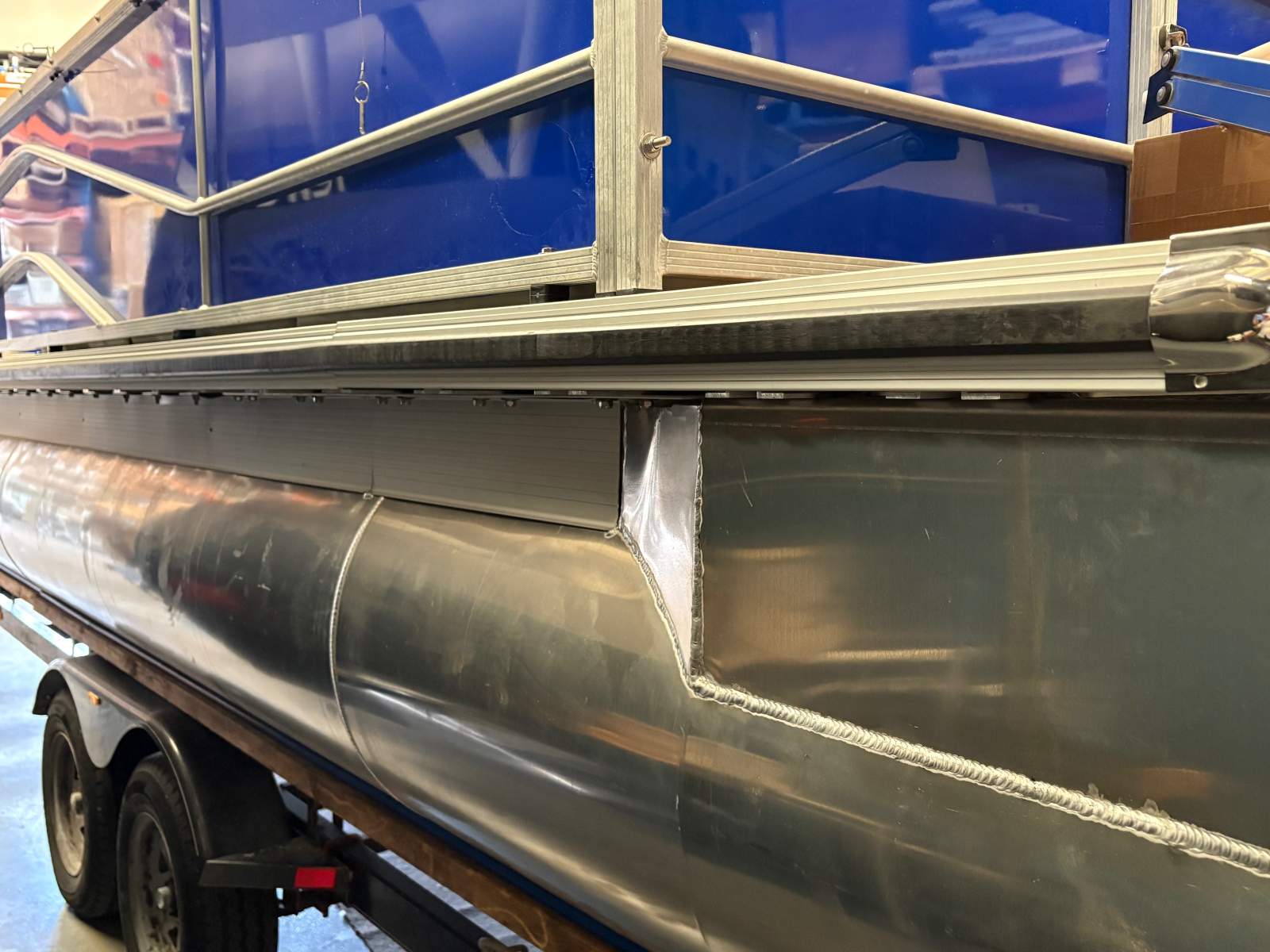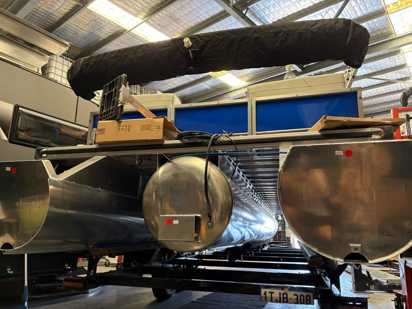 This stable tri hulled beauty has never had the hull splashed and the top side did one season showing Christmas lights before being assembled on to this brand new hull, it was to be the owner personal canal boat before a few changes happened for him.