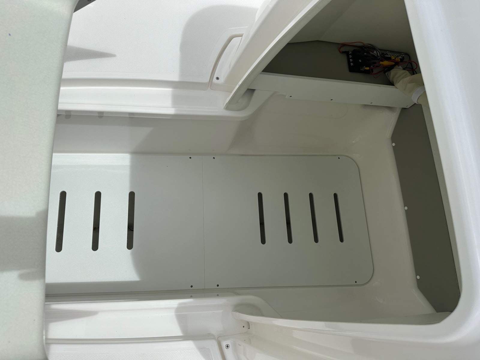 Large storage space with five drainable wells and stern bilge compartment