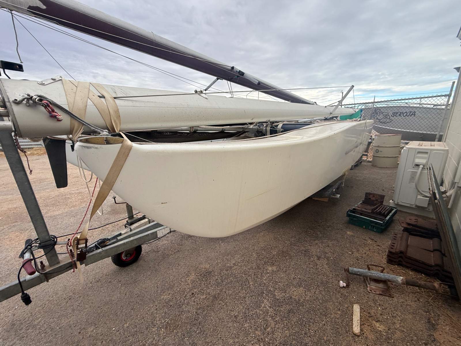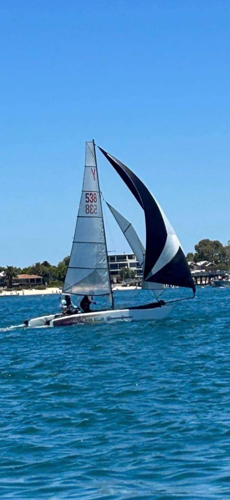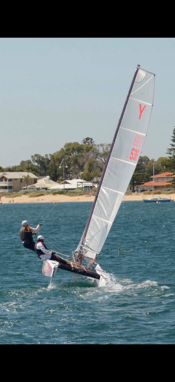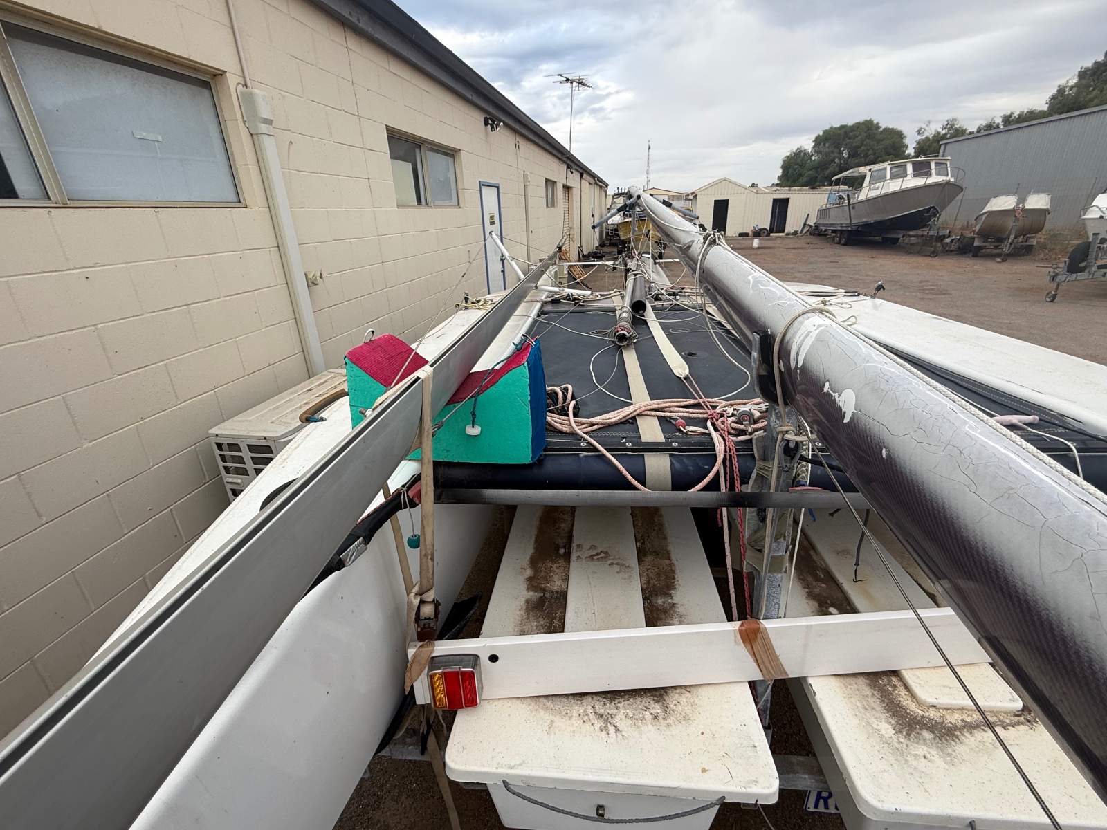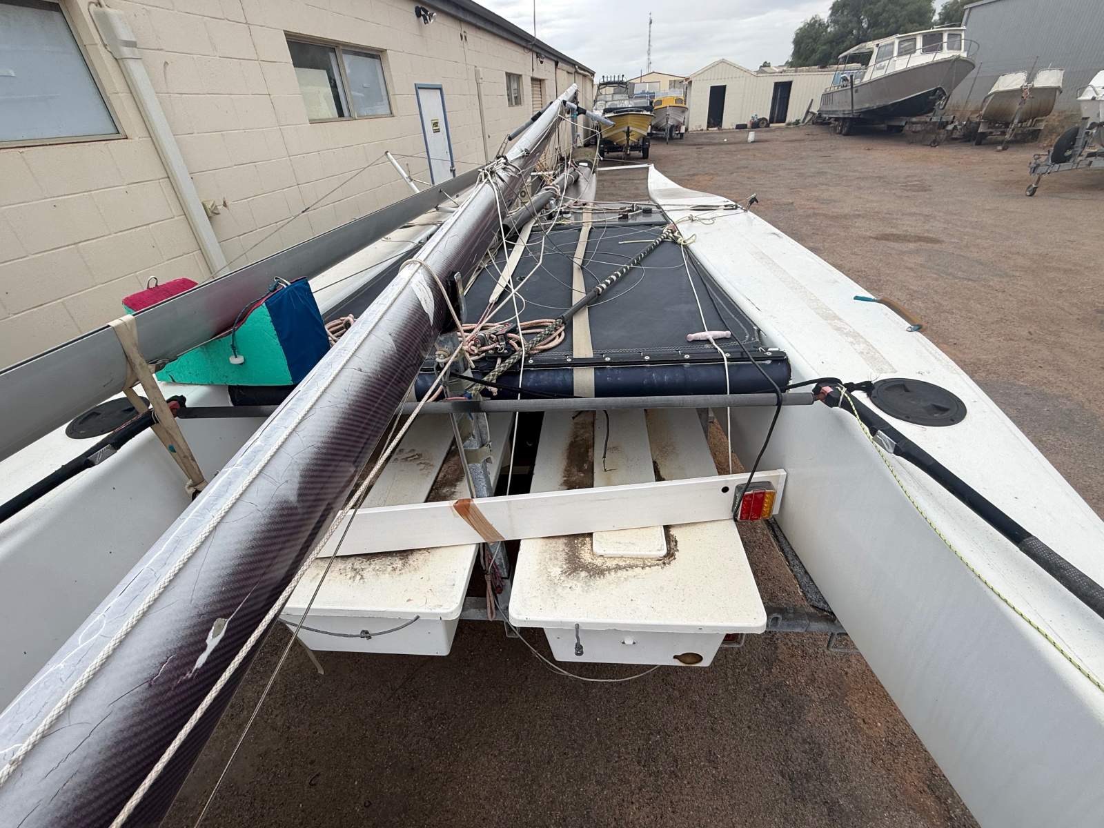 NATURAL BORN KILLER is a well known 6.1m cat as she was the Winner of the Yvonne Catamarang National Championships a while back, Shes still extremely fast and needs a good cut and polish but shes basically race ready still. She has a near new Extreme Sails spinnaker chute, Theres 3 spinnakers overal, 1 in great condition, 1 has had repairs and one needs a couple repairs. The Aluminium boom is great and has a Carbon Fibre as a spare, Theres also spare stays and centreboard. Good set of sails and a spare set. Sitting on a good Nolist Cat trailer that appears to be in good condition and is licensed.