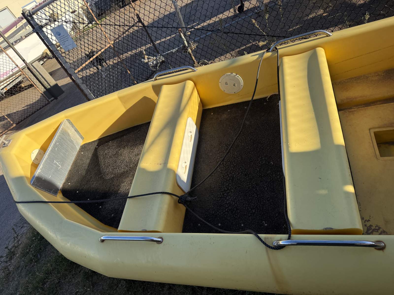 The 3.6 is fitted out with two large storage seat and carpeted floor, something you will not find in you average dingy.